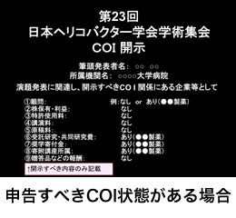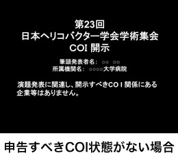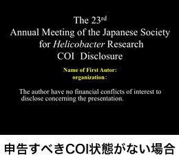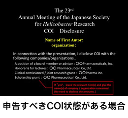 日本ヘリコバクター学会学術集会での発表について、下記の要領で筆頭演者にCOIの開示をお願いいたします。